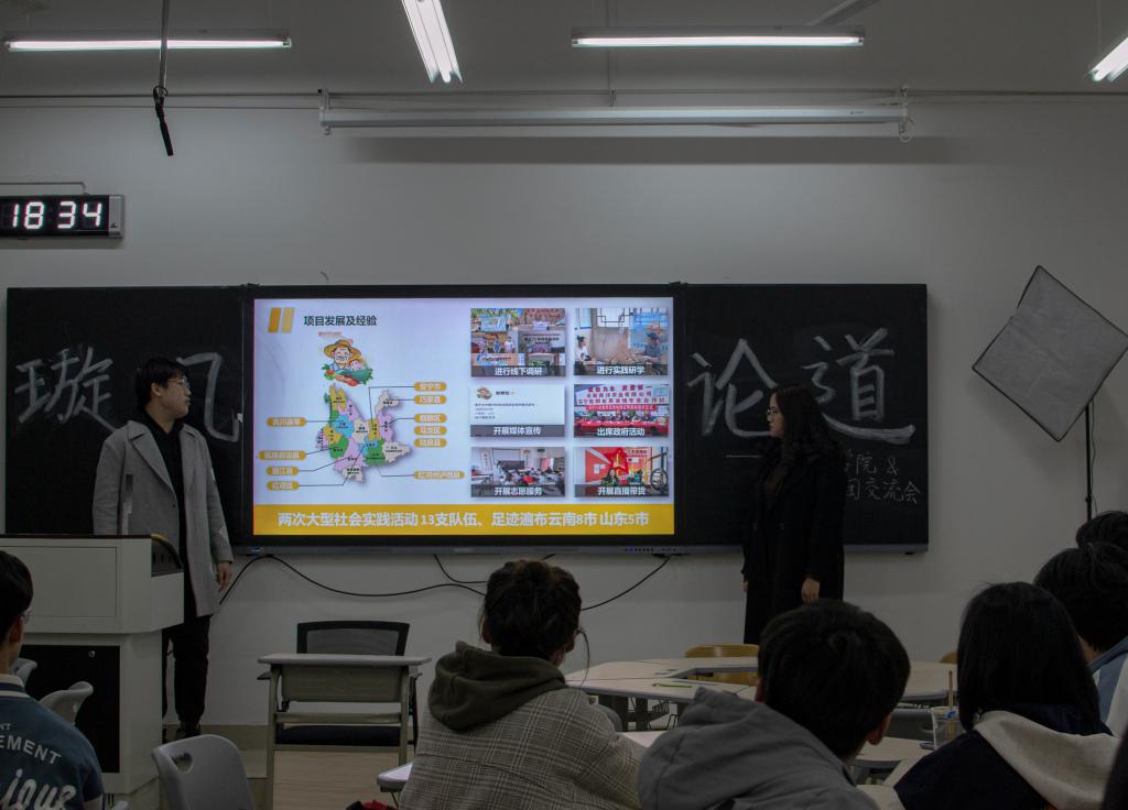 中国·ok138太阳集团于2023年3月26日晚6:30与齐鲁情社团联合举办交流沙龙活动。齐鲁情社团以及两个项目团队交流分享社会实践活动、三千计划经验、志愿服务活动经验以及比赛答辩经验;龙院的同学们交流分享文献阅读、计量软件应用等学术经验。