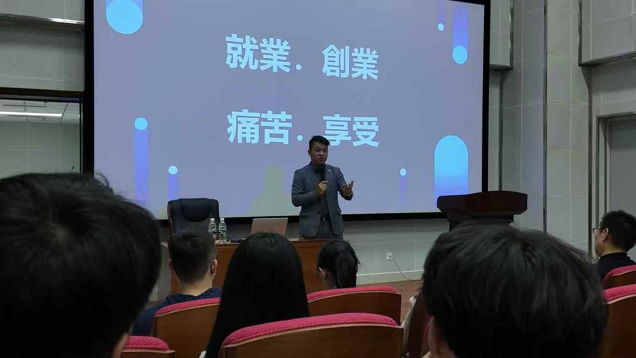 互动交流环节由杨俊煌副教授主持,同学们踊跃发言,提出自己在职业规划方面的问题,两位企业家结合自身的经验,就创业初心、行业前景及对青年人的期盼等方面给出了明晰而有深度的回答,为同学们的职业发展提供宝贵的建议。