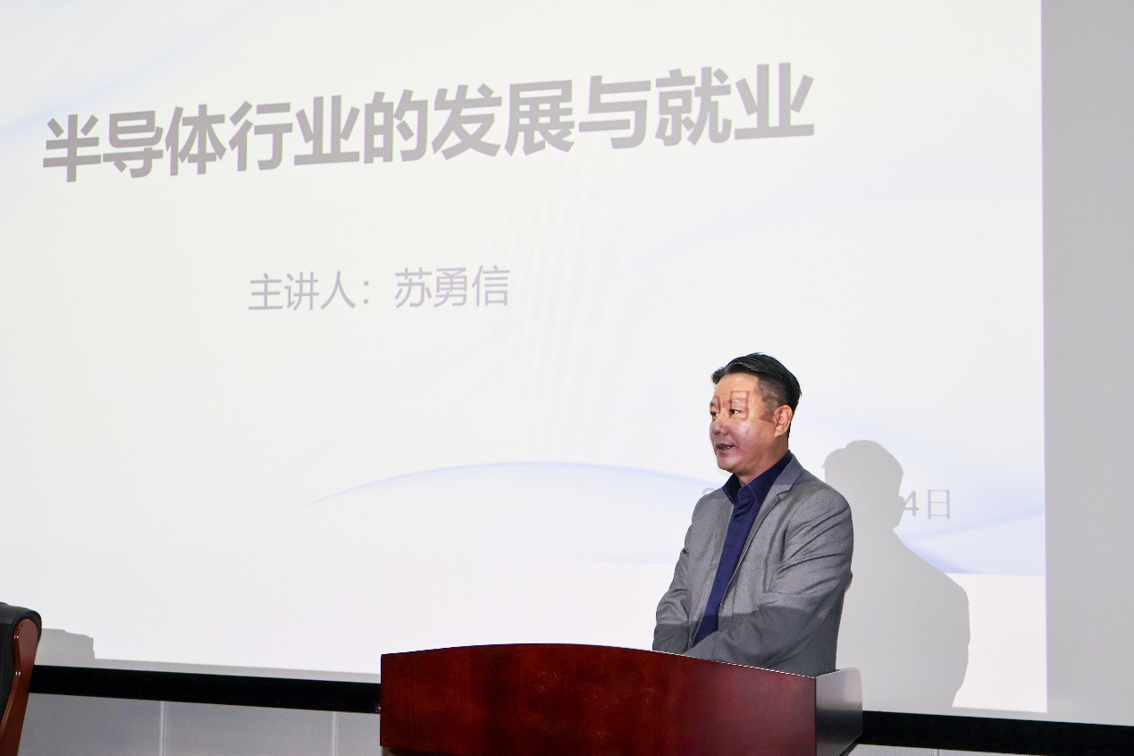 苏勇信总经理从半导体行业的发展与就业展开叙述,介绍了半导体行业的发展现状,提出抓住行业发展风口的建议,并详细介绍了苏州芯钛半导体科技有限公司各岗位所必备的技能,为同学们的就业提供了宝贵的指导意见。